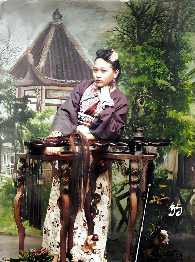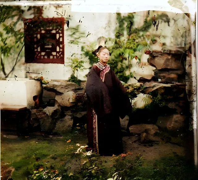 园林里的满族女子站在假山前,披一件深色的斗篷,领口锁着细细的滚边,石缝里冒出一点绿,风吹过去,把她鬓边那朵花晃了两下,这张我喜欢停一会儿,不说话,像是隔着墙听到内院里一阵低笑,以前内外之分重,女子多在院里转圈,现在院门打开,谁都能往外走走。