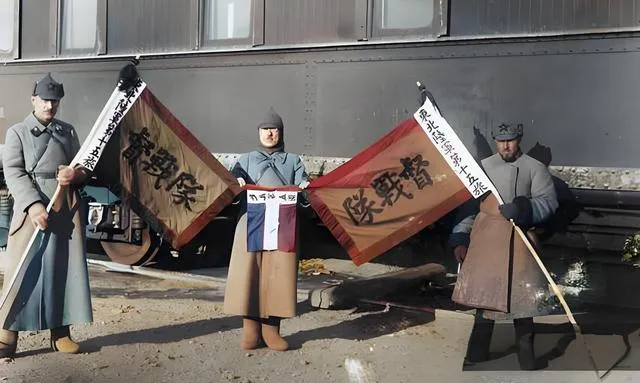 这几面粗布军旗色块鲜明,旗杆是黑木,边缝粗线,站在铁轨旁的人把旗一举,风把旗角掀起半寸,露出布料的经纬,字也跟着活过来,爷爷说,旗子在阵上是眼睛,人跟着走就不乱,现在路上旗帜多见在球场,输赢不过一晚,旧年头里,旗子一丢,代价不只是面子。