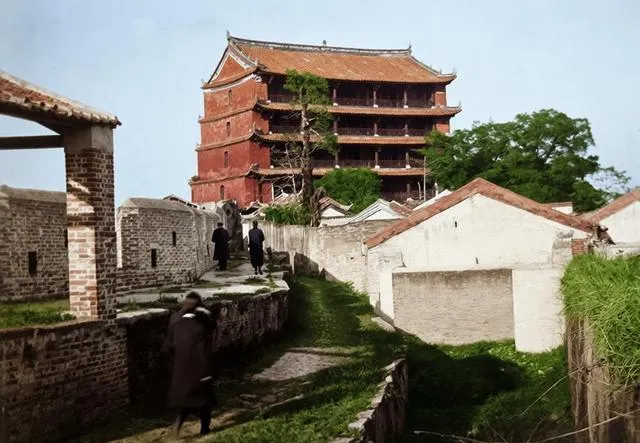 这座五层红墙楼就是镇海楼,砖体厚重,飞檐一层层叠上去,墙脚贴着老城墙,走道狭长,风一吹有股土腥味,我第一次爬上去是在阴天,楼梯木踏板轻轻作响,回头一眼,全是瓦浪,外公说,镇海楼像一把伞,罩着城北,不热闹,也不喧哗。