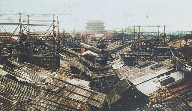 这堆密得发慌的屋顶被人叫“瓦浪”,正南门就浮在浪尖上,前景搭着木质脚手架,横杆斜杆乱中有序,像城市在悄悄换新皮,妈妈看了说,你看,以前铺瓦靠人一片片码,现在吊机一抬就到位,可老瓦的味道,真替不来。