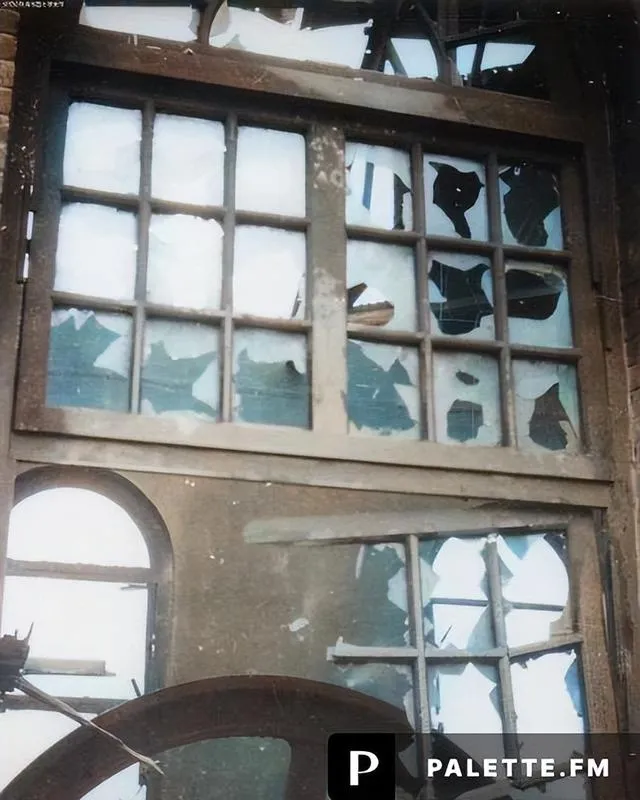 这扇格窗被震成碎片,木框里留着锯齿一样的玻璃口,门楣上方落了一层灰,进出的脚印密密麻麻,像在地上画了路,谁都知道方向向里走。