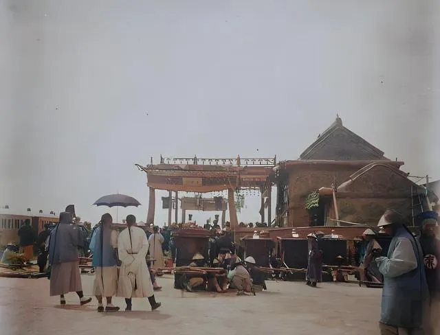 这回不聊收藏市场了,翻出一叠清末上色老照片,颜色一上去,尘土味都带着温度了,石头会发光,衣料能“沙啦”作响,跟着我逐张看,像在旧时光里散步,哪张打动你,心里有数就行。