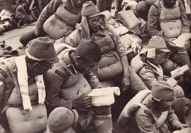 这个群像叫作态,几十个兵身上鼓出一层层棉垫,像塞满了棉花的枕头,帽檐下有人翻着本子看,手上沾满泥污,镜片灰蒙蒙的,乍一看像学习,细瞧却是腔调,书页翻过的声音被江风撕散了,心里想的可不是读书两个字,他们读不出仁义,也不会收起刀枪。