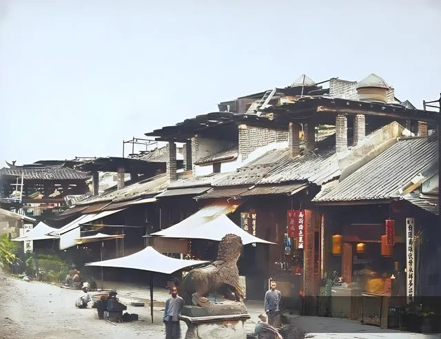 图中这条主路叫惠爱大街,古时广州布政使司正门旁边的一线要道,屋檐压得低低的,木梁黑亮,檐口垂着雨帘似的瓦当,门口石狮子蹲着,身上被手心摸得发滑,摊贩支了白布棚子,影子把地面切成几块,小时候我跟着外公逛街,最怕的是沿街的烟囱冒灰,最喜欢的是糖人摊哧啦一声起丝,外公边走边念叨,这条街以前叫法多,现在换了名儿,人还是那拨人,脚步快了就是。