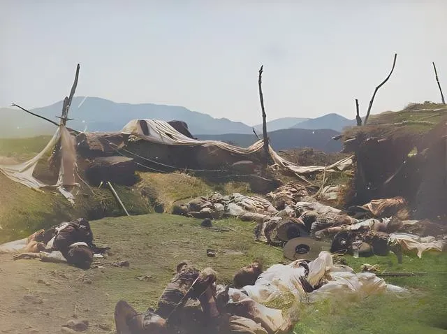这个场景叫广城堡战役遗地,草皮被火烤得发黄,帐篷塌了,杆子像戳在天上的骨头,风一吹就咯吱作响,山影远远地压着,地面散着盔帽和破布,爷爷说,打仗就是这么冷硬,死人不会讲条件,活人记住教训就行,现在我们看历史在纸上翻页,以前他们在地上翻身,代价不一样。