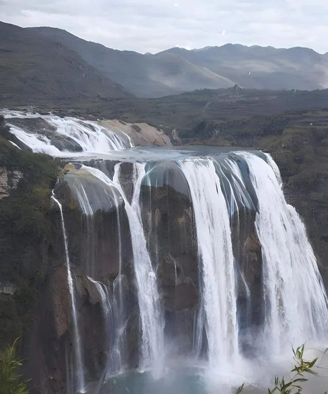 这片白练卷着雾叫黄果树瀑布,河谷像被刀削过,水从台地上一层一层跌下来,远处山色发暗,水汽把天边都糊开了。以前相机底片有限,拍一张要算着角度,现在手机连拍十连发,真正让人记住的往往还是第一眼。