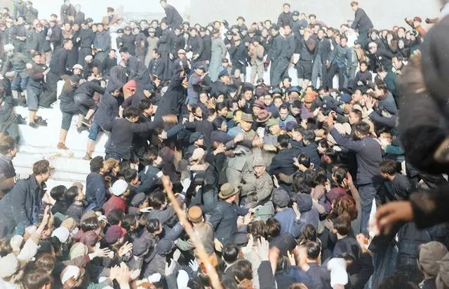 这张近景叫簇拥握手,人群一涌,帽檐被挤歪,台阶边有人踮脚伸手,袖口翻起白边,笑声喊声掺在一起,有点乱却很真,像年节的集市。妈妈看了说,别看挤得慌,心里还是热的,那时候见到人物就像赶上喜事一桩,现在见名人多在屏幕上,手指一划,近在眼前却隔着玻璃。