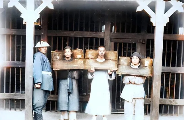 这排方盒子叫轿箱,扁担搭肩,四人一字排开,木头磨得发亮,手心里该是老茧硌得疼,走起路来步子要合拍,不然肩膀吃亏。奶奶嘿嘿笑,说挑担是门学问,不是个子高就挑得稳。