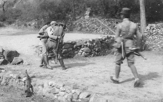 民国老照片:川军进山西,梁兴初扛枪留影,广西少年兵穿草鞋扒饭。