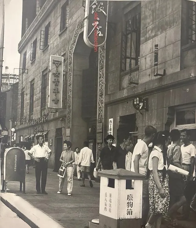 女青年会门口这张近景,最有意思的是人群站姿,有人抱手看热闹,有人踮脚凑进门脸,一旁垃圾箱上写着“废物”,我外婆看了笑,说那会儿东西少,废物都不肯丢,哪天就派上用场了,桌布破了剪成抹布,抹布烂了塞灶缝,真到了没有的日子,才知道什么叫攒家底。