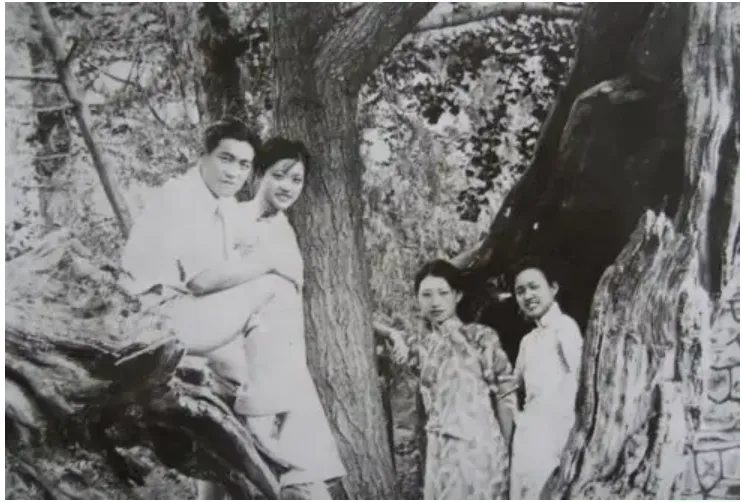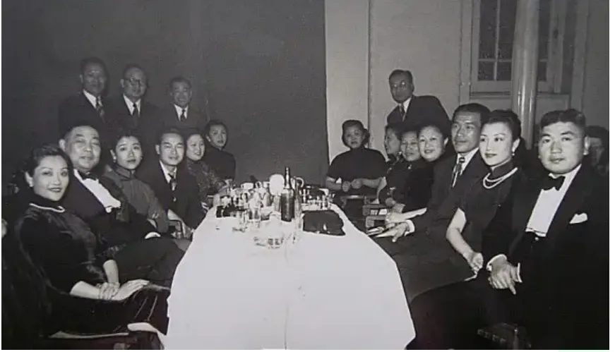 这张应该是1950年在上海的一次聚会,想给大家看的是右二的严仁美。家世显赫,气质非凡的绝色佳人,