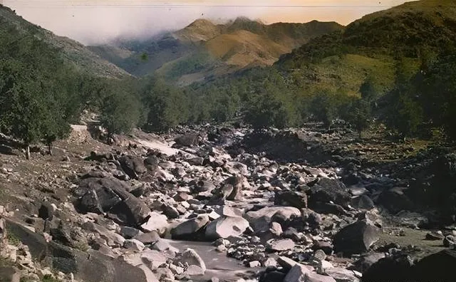 这条沟谷叫桃花涧一线的乱石滩,水急时白浪翻花,枯水季只剩湿石发亮,爷爷说以前挑水要沿石缝走,脚底下要快要稳,一慢就打滑,担子压得肩膀火辣辣的疼。