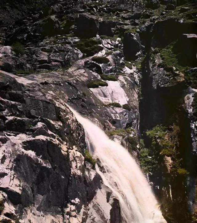 这道浅瀑顺着平滩滑落,水色发白,边上的石面被水磨得发亮,像抹了油,若是夏天,孩子准要下去踩两脚,冰得直吸气,还是舍不得走。