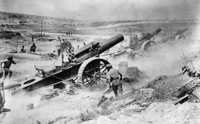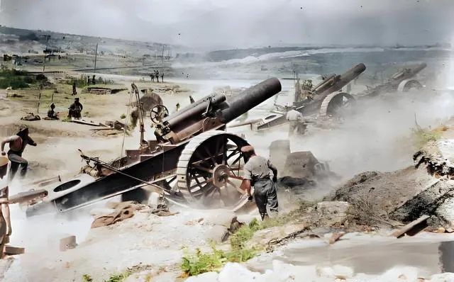 你要真站在炮后,会听见三种声,先是口令短促一下,然后装药袋塞进金属腔的闷声,最后是火门点燃时那下尖锐的嘶,彩色把尘土里混的碎叶子都显出来了,说明这地儿原本是片坡地,炮火把它翻新了一遍。