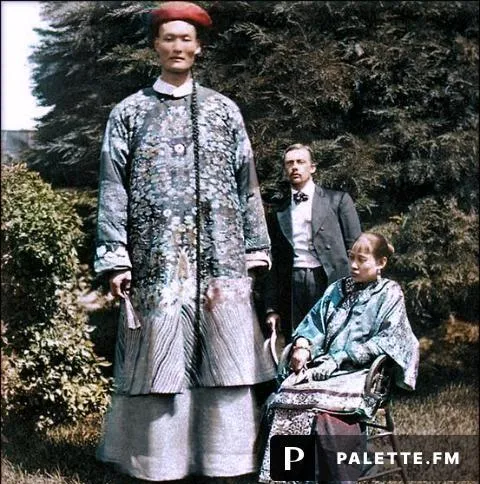 这位个子出挑的人穿的是织锦长衫,肩线被身高一拉更显窄,袖管里塞着两把折扇,细骨在布面底下顶出小小的棱,站在他旁边的人抬着头看,像在量尺,小时候我常把长衫当窗帘玩,奶奶笑说你个淘气包,真穿一天就知道沉了。