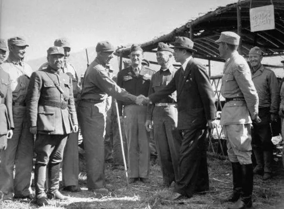 图里这场合叫会师,泥地上插着临时的棚杆,几方军装站成一排,握手时谁也没抢台词,只是笑,衣襟上灰点子都没来得及掸,旁边的翻译把话往来回递,我想起家里老爹说的一个词叫**“赶上了”**,这一下子,真就是赶上了。