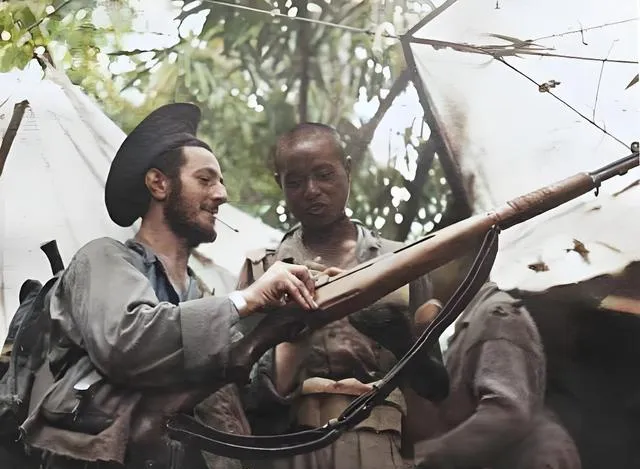 这个木托枪叫M1加兰德,拉机柄时有金属擦碰的脆响,教枪的洋面孔比划得飞快,手指点着照门和准星,说连发完了会叮一声把弹夹甩出去,别被响声吓到,咱的弟兄瞪着眼学,一会儿就把肩托卡得稳稳的,抬头那一下,像突然长了个新胆。