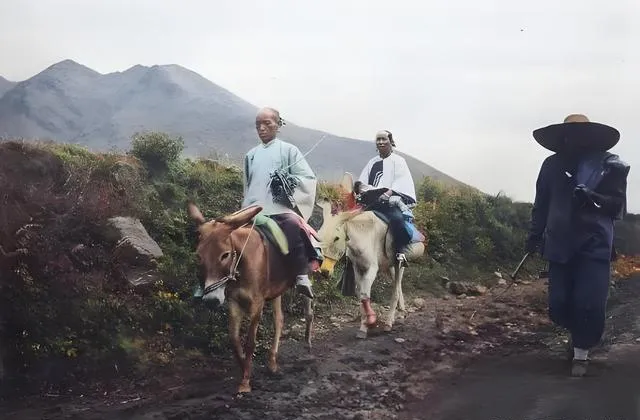 这两位的坐骑叫小毛驴,鞍垫厚厚的,前头拴了一只月牙扶手,裙摆压在鞍下不乱飞,驴夫拎着鞭,手腕轻抖,驴耳朵一抖就懂,外婆说,骡马性烈,老太太们只认驴,稳当。