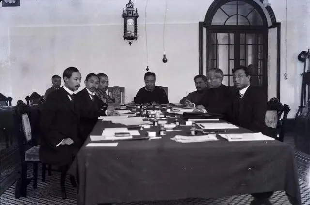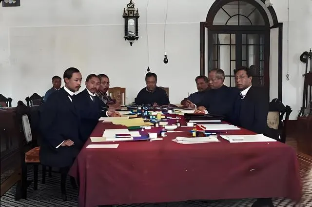 这张桌子叫内阁台,红桌布铺得平平整整,墨水、文件、信笺按颜色摞着,坐在上手的把手指在桌面轻点一下,声不大,意思够了,旁边的人会心一点头,纸张边角被翻得起了毛。
