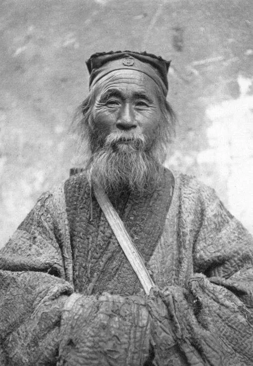 这个老人叫道士,帽檐上缝了个小圆徽,胡子花白,眼睛里有点笑意,粗布道袍补了又补,胸前那根带子磨得发亮,他看镜头不躲,从容得很,像看老邻居。