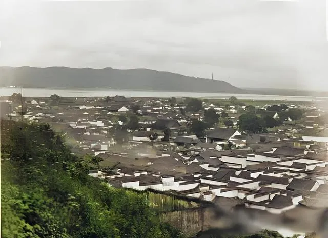 这些照片一彩一灰并排看,像把旧唱片翻到反面,黑白里是骨相,上色后是血色,屋瓦的冷暖,衣料的光泽,树荫的层次,都被轻轻点醒了,我喜欢这种不吵不闹的复原,它不把历史改写,只把褪色的边缘描一描。