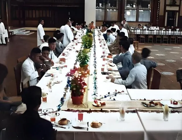 这个长桌一摆就是气派,白桌布像新雪,玻璃杯排成队,男孩子都坐得板直,等着宣布动身的路线和分工,服务生穿白褂来回走,端起橘色饮料的时候手腕一沉一抬,很利落,席面看着热闹,其实每个人心里都绷着弦。