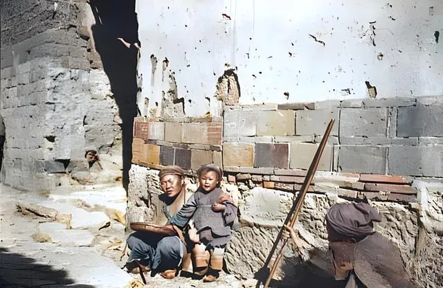 这个靠墙坐着的,是母亲和孩子,墙皮掉得厉害,日头照在脸上暖洋洋的,孩子靠在怀里眯一会儿就笑,穷也好富也好,晒到太阳心里总是亮一块,奶奶说那时候家里没炉子,冬天就找背风的墙脚蹲一会儿,身上这点热乎气啊,全靠太阳给的。
