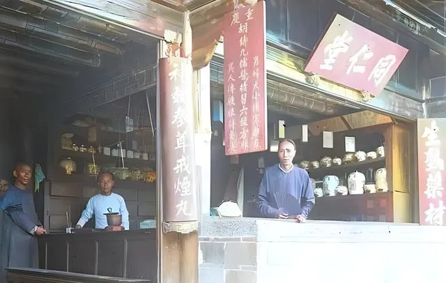 图中这家药铺叫同仁堂,门柱挂红色木牌,金字写得板正,屋里一排药罐黑亮黑亮的,伙计穿青灰长衫,手里托着药铲,眼神既好奇又规矩,奶奶说那会儿抓药要先称再复核,铜秤一挑,砝码一挪,分毫都差不得,店里的规矩多,“炮制虽繁必不敢省人工,品味虽贵必不敢减物力”,这两句在柜台后面常年挂着。