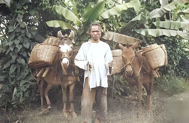 这个人站在田埂边,左右各一头牲口,背着柳编大篓,衣裳打着补丁,眼神空空的,像一宿没睡醒的样子,爷爷说这叫赶山路,清晨出门天黑回家,脚下的路把鞋底磨得薄透,以前种一亩地要人要畜一起上力,现在有拖拉机了,人坐着就到了地头。
