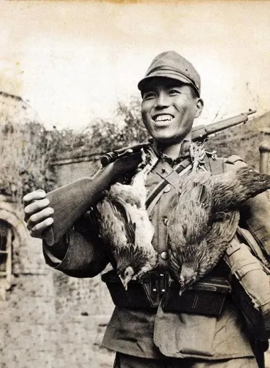 图里这个笑着的家伙脖子上吊着两只鸡,枪背在肩上,皮带插满弹袋,羽毛被汗水打湿呈褐色发黏,鸡爪直直往下垂,像被抽走气的草绳,爷爷见到这种照片只吐一句话,说这是把人家的锅底端了的笑,这两只鸡在那年月值的不只是钱,是一家的油星子和过年那口荤,现在看着他得意,我们心里只剩反胃。