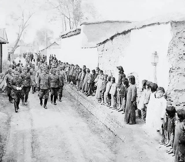 以前我们以为战争是远方的炮声,现在才懂它是炊烟里的凉,是院门被踹开的响,是年猪空圈的吱呀,是孩子被喊去排队的怯生生眼神,现在我们有书有网有灯有暖气,可不代表可以把这些照片藏回抽屉,哪怕只记住一张也好,记住那串被掠走的鸡,那片被啃光的瓜地,那道被履带压出的沟,我们才知道教科书外的历史,原来就长在家门口的土里。