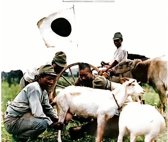 这个场面看着怪,羊被扣住,两只手一挤一放,奶水打在铁皮碗里发脆响,后头挂着旗,旁边套着毛驴车,村里人见到这阵仗都不敢吭声,妈妈说,家里把奶留给小孩补身子,被人按着挤光了,小孩当晚哭到睡着,碗里只有洗过的水味。