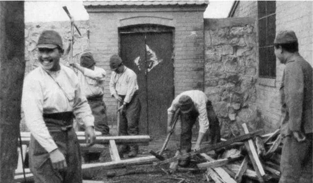 这张里几个人拿着撬棍,木板满地,门上的纸糊破成狗牙边,人笑着,背后是冷的墙,外公当年守过灶,说柴不够,桌子也得烧,最先拆的是梯子和小凳,因为好点火,等炊烟过去,屋里只剩炭灰,孩子回家要找作业板,都没了。