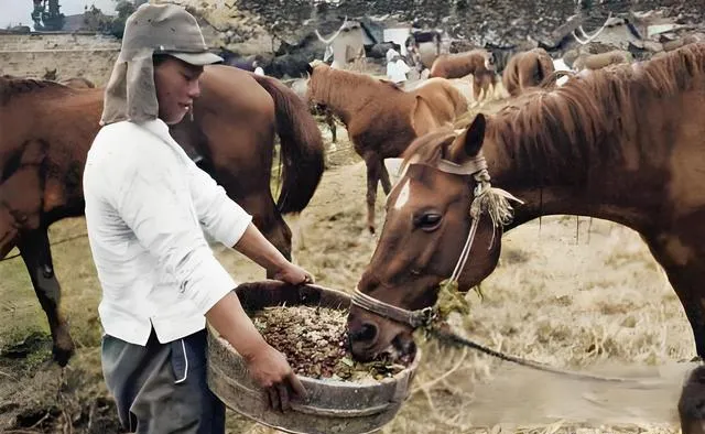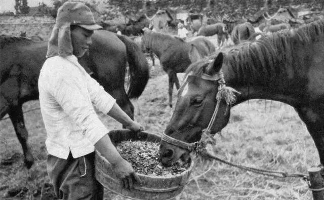 盆里是掺着麸皮和豆饼的混合料,马嘴伸进去拱得急,嘴角的白沫顺胡茬流,栏杆后面一排枯黄的草地,看不见谷仓却能闻到碎秸秆的味,老辈人说,战马一天要吃好多斤,后勤一断就去民家翻粮仓,先喂马,人才排到最后,这账翻到今天看,都不合人情。