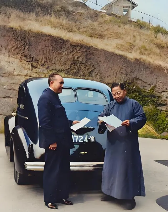 这辆黑光油亮的美式轿车,尾灯像两滴墨,两个人靠车说事,手里拿着文件夹,纸角被风挑起来一点点,爷爷指着车牌的数字笑,说当年他在成都见过差不多的样式,站在路边就觉得有劲,铁皮厚,门一关咔哒一声很结实,现在马路上跑的车更多更快,钥匙都不要插了,手机一点就能开,可那种稀罕劲不见了,少时见一次车能回家说一周。