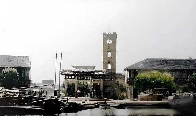 这个立在河边的牌坊就叫大生码头,四个大字端端正正,旁边的钟楼抬头就见,水里趴着木船,船头捆粗绳,码头边堆麻袋和木箱,装的是棉花与纱线,这地方讲究水路进出,货走得顺生意才生,外公说那会儿挑夫吆喝声一茬接一茬,傍晚钟一响,河风把汗味吹散,家家户户才收摊回屋,现在物流一键下单,箱子隔天到,码头两个字,更多留在地名里。