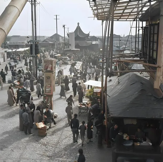 这条街口一拐就是下关码头通衢,路面是碎石青砖,摊位密密麻麻,挑担的、推车的、穿长衫的挤在一起,屋檐下支了竹杆与棚布,热气和吆喝一层压一层,小时候我喜欢凑近卖茶汤的桶,冒出来的白雾一股甜香,摊主用锡杯舀给我,烫手却不愿松,现在商场空调稳稳的,动线干净,价格明码,热闹被秩序替代,好也好,少了点乱里生香。