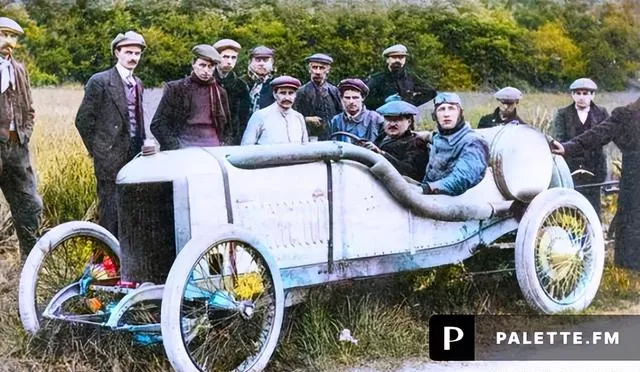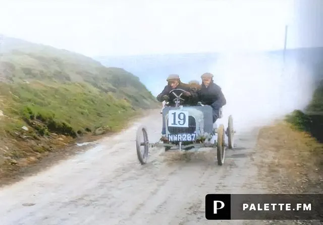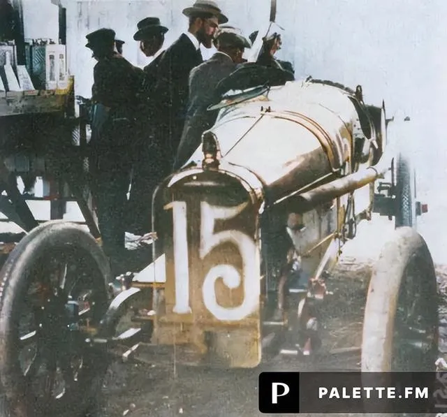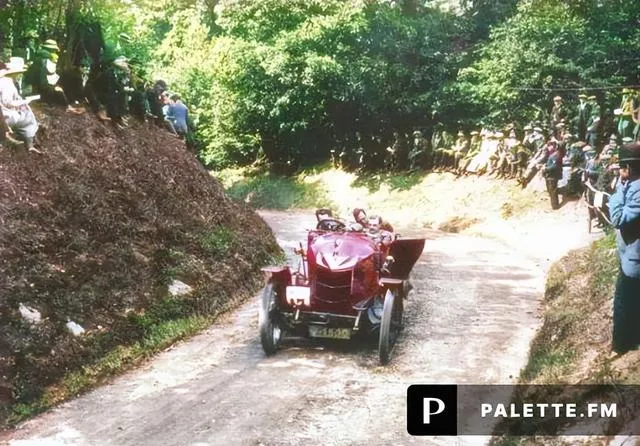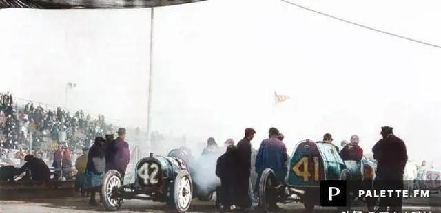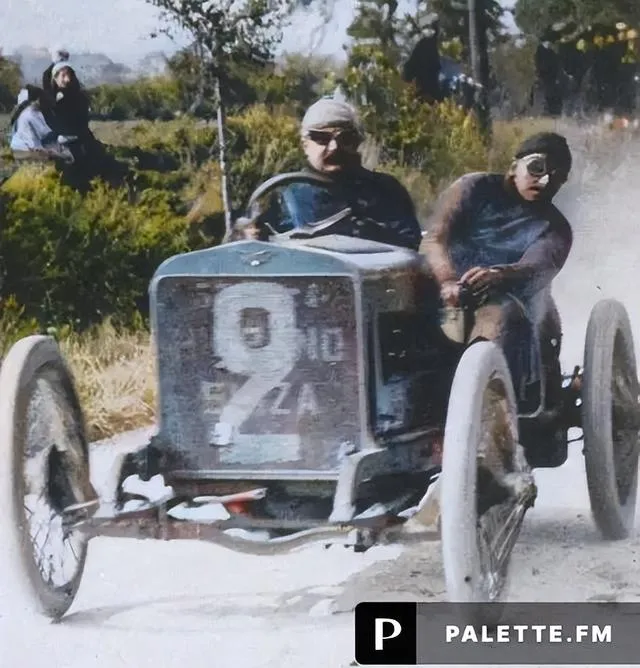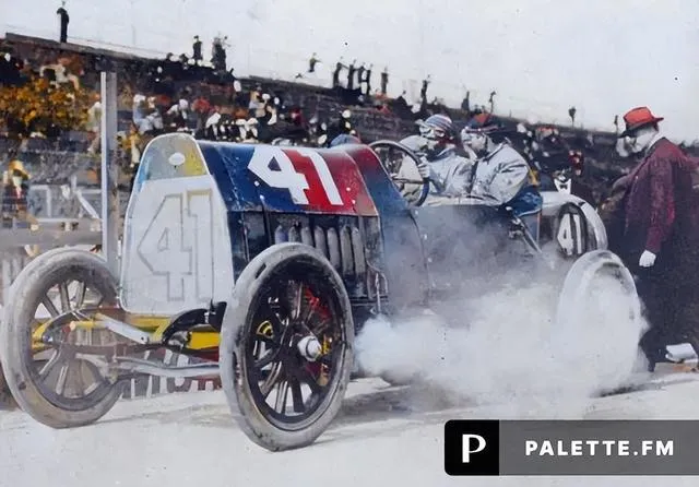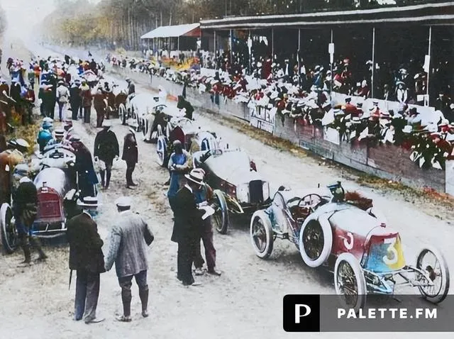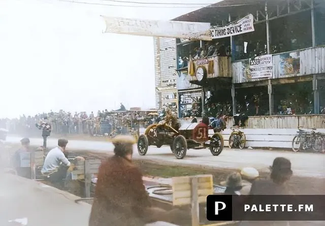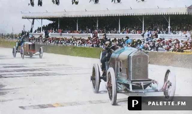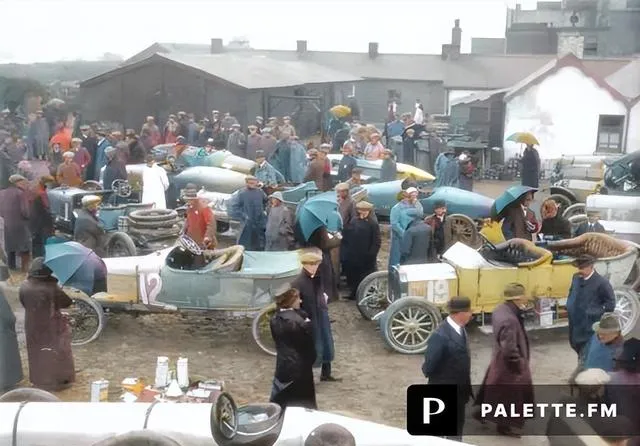 绚丽的彩色老照片:揭示百年前汽车竞技的魅力。