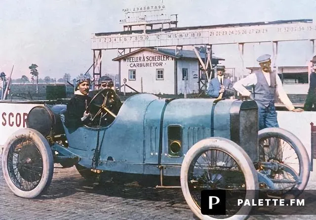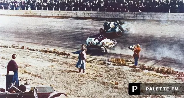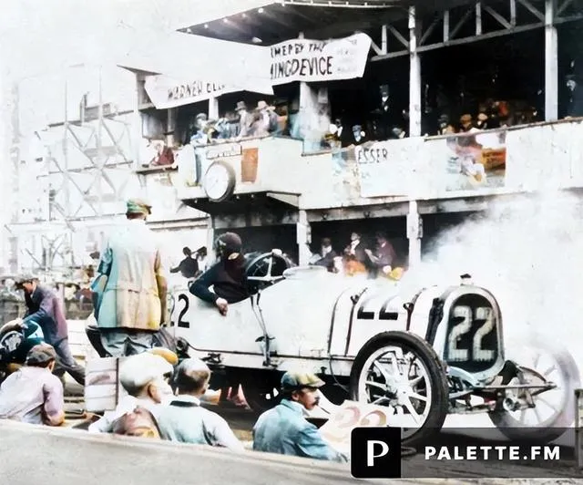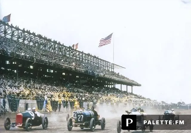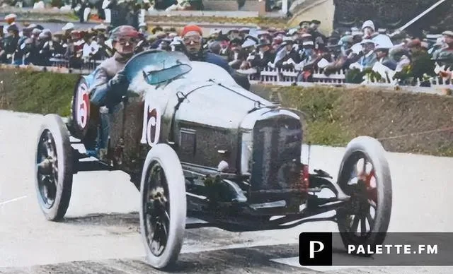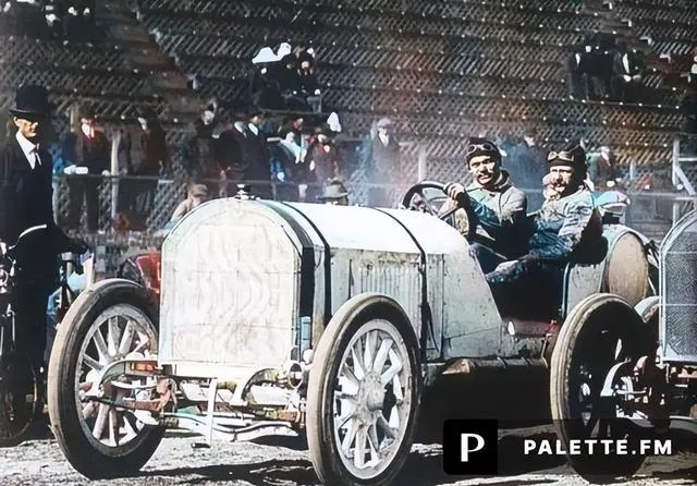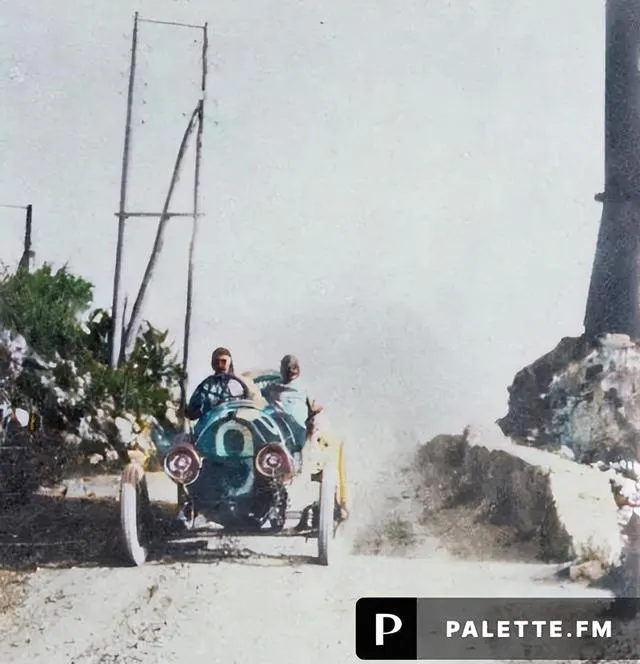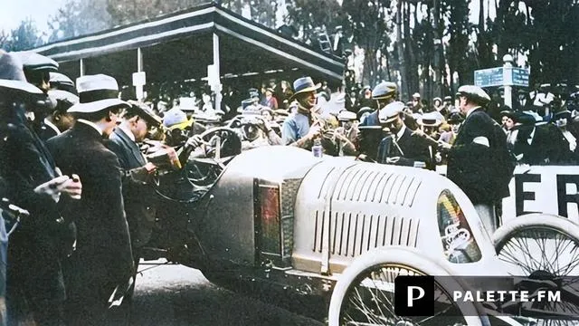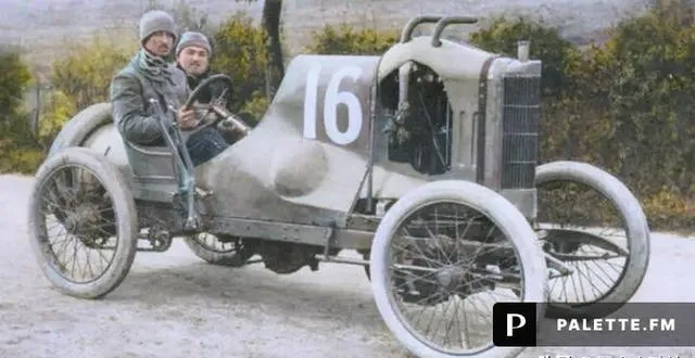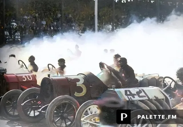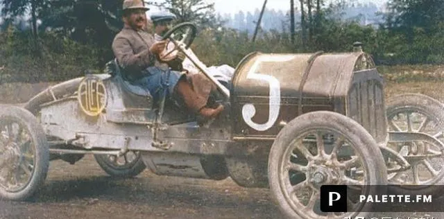 绚丽的彩色老照片:揭示百年前汽车竞技的魅力。