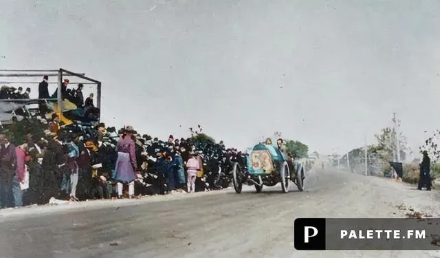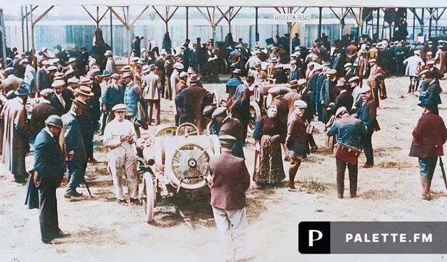 先别忙着下结论,这一大摞彩色老照片一摆出来,我脑子里“轰”的一下,全是油味儿和砂石声,百年前的人把速度当成节日一样办,街口拉上横幅,木架子搭成计时门,围观的帽檐挤成一条线,车手们把薄薄的护目镜往上一推,冲着镜头笑得挺灿烂,这股子不怕风沙就怕不快的劲儿,隔着一百年都能窜出来。