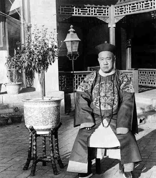 这个正襟危坐的叫广州将军长善,团龙补子绣得密,朝珠垂在胸口像一串沉甸甸的算盘,背后影壁一道折折叠叠的阴影,花盆搁在雕花木几上,盆沿一圈彩釉亮得刺眼,爷爷说,长善是个开窍的旗人,敢办同文馆,敢让小辈学外文,这口子一撕开,后面才有报馆电报的热闹。