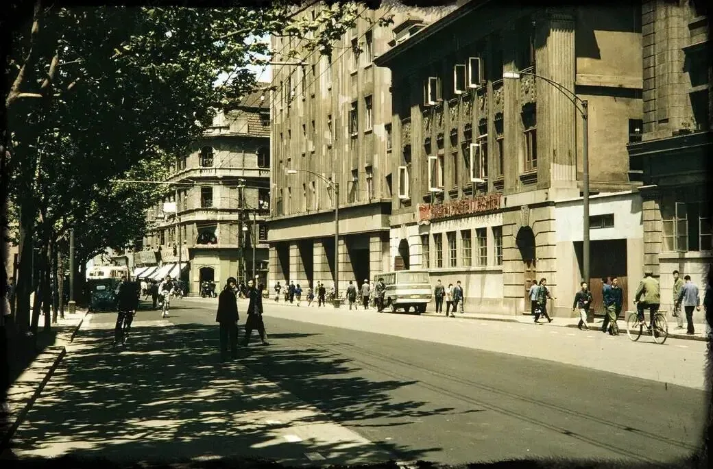 1973年拍摄的南京路近四川路西望。由Harrison Forman拍摄。