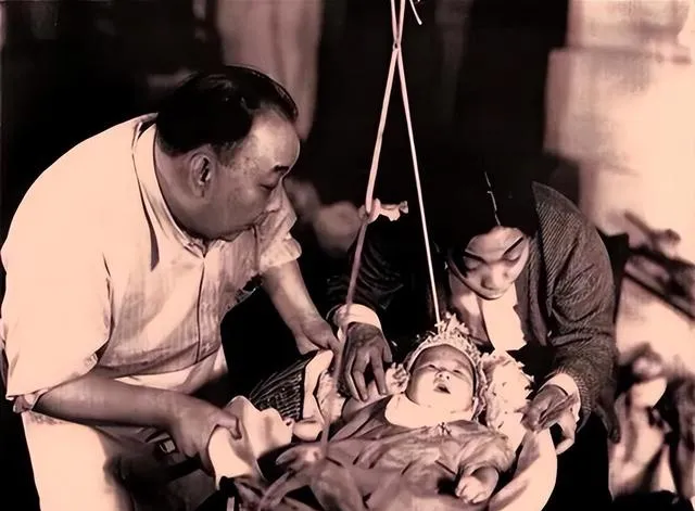 这个藤编的叫吊篮摇篮,两根绳从屋梁吊下,篮沿上缝着白绒边,婴儿躺在里头呼吸均匀,男人探身握住篮沿,女人把衣角往里掖,动作轻得像怕惊醒风,外婆说过去带孩子全靠这个,一推就晃,哄睡比唱歌顶用,家里忙活的时候,篮子在半空悠悠晃,现在都讲科学睡眠,温湿度一条条写在App里,倒也安稳,就是少了这份手心的温度。