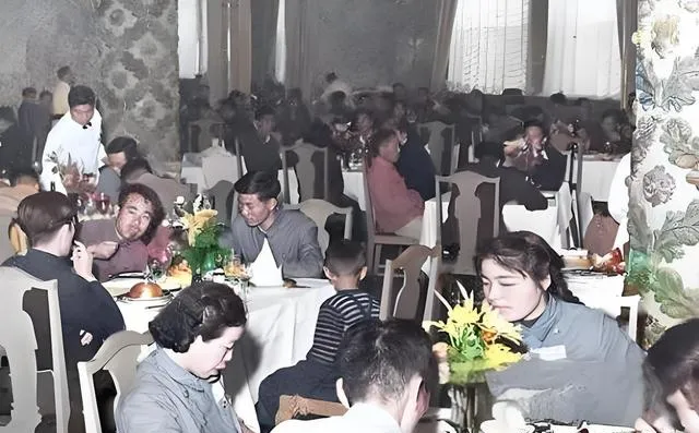 图里这一屋子热闹的地方叫大地西餐厅,当年在西长安街,别看摆着白桌布和花瓶,路线不高奢,点菜也不心抖,罗宋汤一碗端上来红亮亮,罐焖牛肉咕嘟咕嘟,孩子夹一块还会吹两口再吃,椅背高挑,餐具不花哨,老两口坐一桌,旁边年轻人聊得起劲,服务员手里托着盘子穿来穿去,像极了我妈第一次进西餐厅的样子,她小声嘀咕,这刀叉拿反了别人会不会笑话,结果一口汤下去,脸都热了,便宜又实在,这就是那会儿的城里风景。