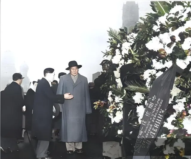 画面中高高的花圈挤满了白花和绿叶,黑色缎带垂在侧边,字迹细密,身旁的人穿呢大衣戴礼帽,队伍往前挪一步再停一下,这叫拜谒,冬天的雾气把背景都糊掉了,只剩花和人,场面安静得能听见鞋跟落地的声响。