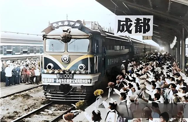 这头戴“电”的机车就叫电力机车,车头涂成蓝绿两色,额头上挂着大大的花结,站牌写着成都两个字,站台那边一片白花花的挥手,像浪一样扑过来,汽笛一喊,孩子捂耳朵笑着躲,爷爷说,以前翻秦岭靠蒸汽,慢得人心焦,现在一通电,车一抖就上坡了,路短不短,心里最清楚。