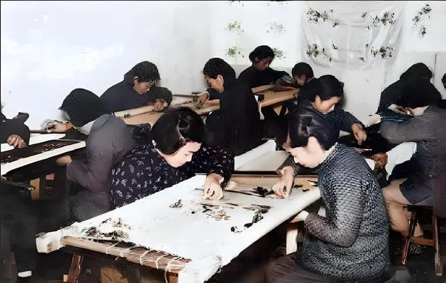这一屋子白绷架和低头的背影,是苏州刺绣手工业生产合作社,绣绷被细绳绷得紧紧,丝线一缕一缕从绣娘指间滑过去,黑色棉袄上粘着绒毛,视线越看越安稳,针尖出入之间,花瓣就冒出来了,外婆说,绣到细处要屏气,连咂嘴都不敢,后来机器印花一卷卷出了厂,手上的活儿就少了,可这种细致劲儿,真不好替代。
