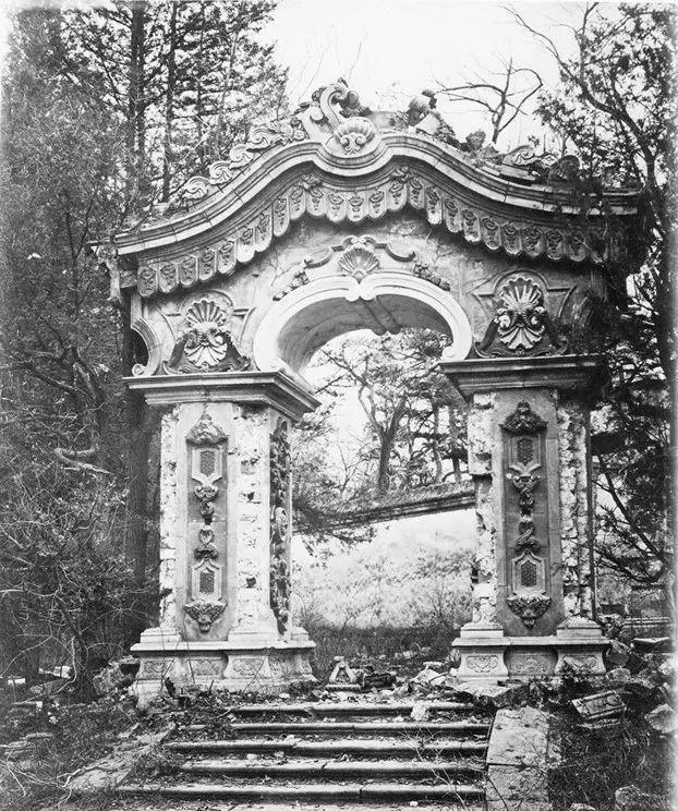 这个花里胡哨的拱门就别绕口了,直说它是西洋楼的门脸,卷草、贝壳、果饰,雕得格外细,阶下石块断裂,一脚踩上去还会晃,照相的人站得不近不远,正好把弧线兜住,等你再往里看,空空如也,墙体没了,只余门在那儿硬撑,这东西在书上常被当“暴行证物”,可真到现场,除了愤懑,你也会被手艺折服,残到极处,还能把人抓住眼。