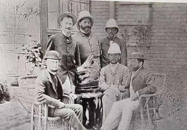 桌中央的这个铜家伙叫龙首,海晏堂十二生肖喷泉里的一件,角与须都齐整,鳞片一片一片压着,周围几位洋人坐成一圈,藤椅、硬领、军帽,表情像在炫耀战利品,这一幕我第一次看时手心发热,妈妈在旁边只说了一句,东西再好,离了老地方就没了神气,是啊,文物不是孤零零的摆件,它离了水声石阶,便只剩冷金属。