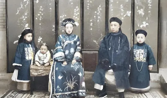 这个大家庭合影讲究位次,长辈坐中间,小的站两侧,衣料多是缎面团花,手里攥着荷包、串珠,孩子的补服小胸背一绣就是个门第,奶奶看了照片笑说,当年拍照是大事,先择日子再梳头,谁都不敢乱动一下下巴,不像现在手机一举手就开拍。